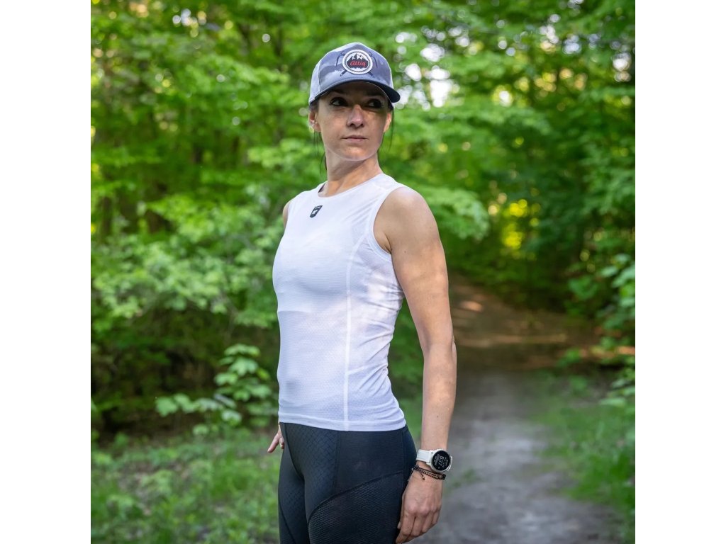 Nátělník Alfa má široká ramínka a delší zadní část, která chrání záda a snižuje riziko podráždění při opakovaném pohybu. Malé větrací otvory v materiálu podporují cirkulaci vzduchu a zvyšují pohodlí během intenzivního tréninku.